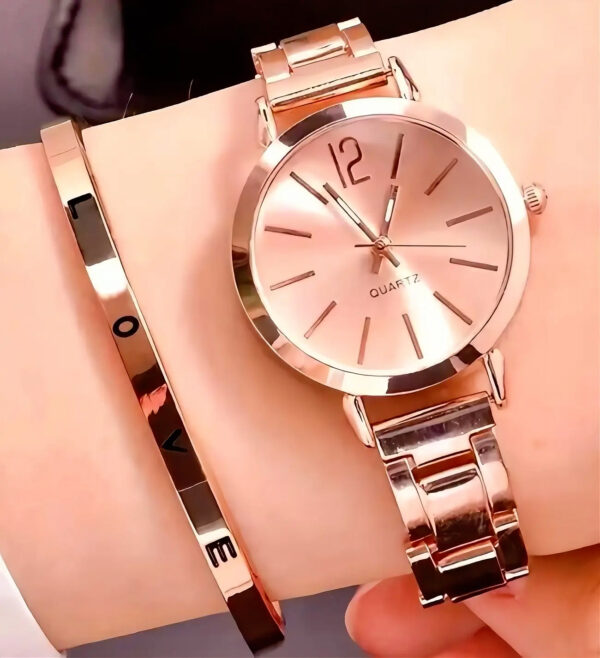 Quartz YN2 rose gold colour Luxary metal strap ladies watch with ladies bangle come in to watch box. Perfect surprise gift for your loved ones.